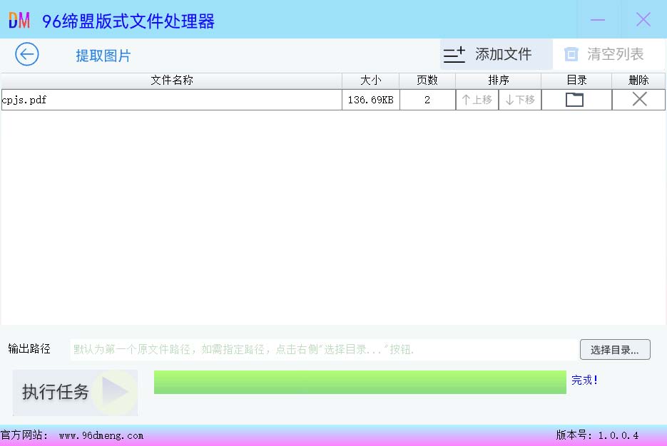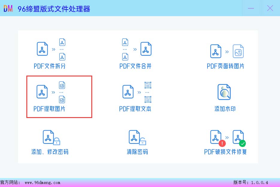 96缔盟pdf版式文件处理器 (下载地址:https://www.96dmeng.com/)是一款完全免费的pdf处理工具。操作简单实用,并且非常专业、高效、安全,最最最重要的是 ,完全免费使用!也不会做在处理后的文件页面添加水印等流氓行为。