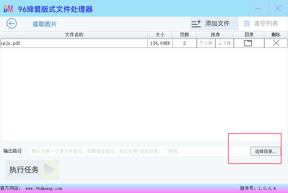 默认可以不用选择,操作完成执行后的文件将在第一个原文件所在的路径下创建一个新的文件夹存放操作后的文件。如果想指定那么可以点击右侧的“选择目录…”指定需要的目录。如下图