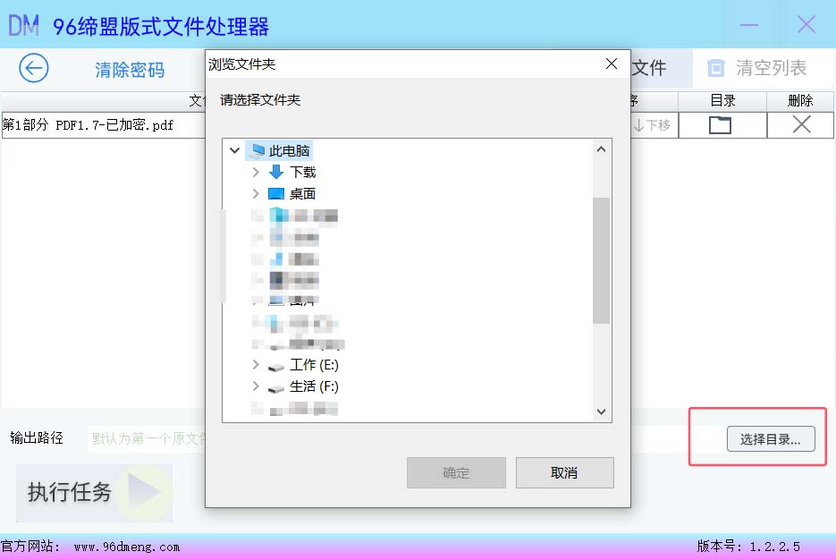 默认可以不用选择,操作完成执行后的文件将在第一个原文件所在的路径下创建一个新的文件夹存放操作后的文件。如果想指定那么可以点击右侧的“选择目录…”指定需要的目录。如下图